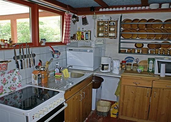 Fra stuen er der også udgang til den solrig terrasse. Begge terrasser har nye fliser. Sommerhuset er blevet pænt renoveret med nyt tag, ekstra isolering på loftet, nye termovinduer, nye stern og vindskeder samt den nye overdækkede terrasse.