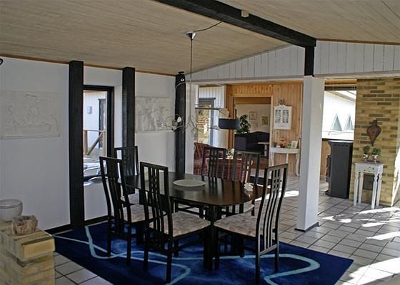 Sommerhuset er med sine 139 kvm velegnet til at huse en stor familie, og de store fællesrum centralt i huset har alle en flot udsigt til fjorden.