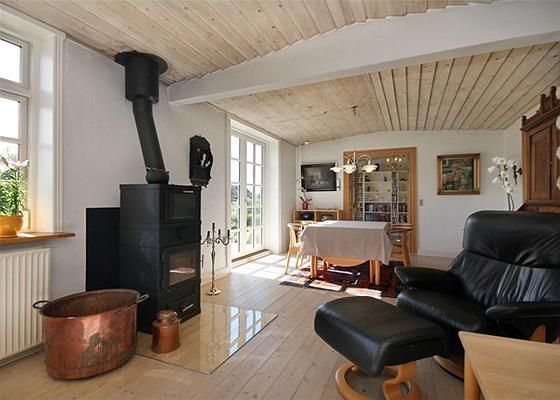 Indeh.: Entre med klinkegulv og trappe til 1. sal, Bryggers med klinkegulv, bordarrangement med vask og vaskefaciliteter, Badeværelse med bruseniche, Pænt køkken/alrum med klinkegulv samt udgang til overdækket terrasse, Viktualierum, Lille stue med franskdør til stue med trægulv og brændeovn.