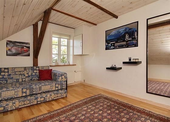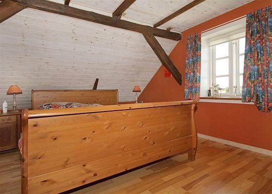 På 1. salen er der synlige loftbjælker, soveværelse, 2 værelser, stor garderobe, toilet med håndvask mm.