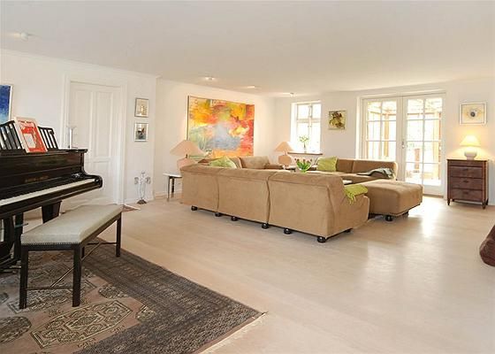 køkkenelementer i hvidskuret fyr og komfurniche, terracotta-farvet, rustikt klinkegulv og en oveflod af kvalitets-hvidevarer samt udgang til terrasse og haven via dobbelt fransk dør. her er der også flot hvidt loft med stuk.
