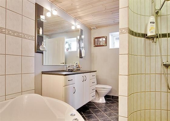 Huset rummer i hovedtræk følgende: Entre med opgang til første sal, stort bryggers, grovkøkken/vaskerum, viktualierum, badeværelse, teknikrum, stort åbent køkken/alrum med udgang til sydvestvendt terrasse, stor stue samt stort soveværelse med nyindrettet walk-in closet. Fra stue udgang til erhvervdel, indrettet med kontor.