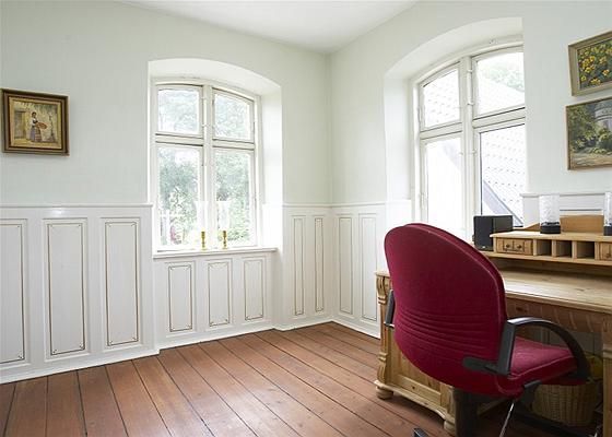 Stuehuset er i flot arkitektur i røde mursten og skifertag og buer ved de fleste vinduer. Hele boligen er gennem de seneste 10 år gennemrenoveret overalt og fremstår i stueplan bl.a. med...
