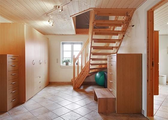 I tilbygningen findes stor åben og lys gang med opgang til 1.salen via en flot trappe. Fra gangen adgang til stort flot, lyst og rummeligt badeværelse.