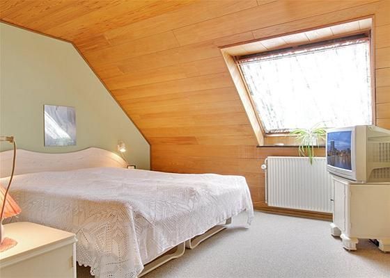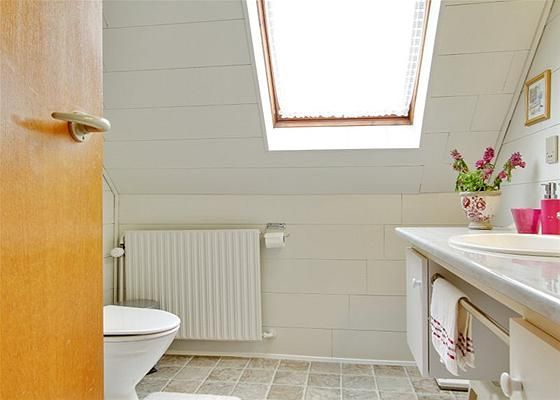 Den godt udnyttede 1. sal har lille depotrum, 3 værelser, soveværelse og badeværelse med toilet og brus.