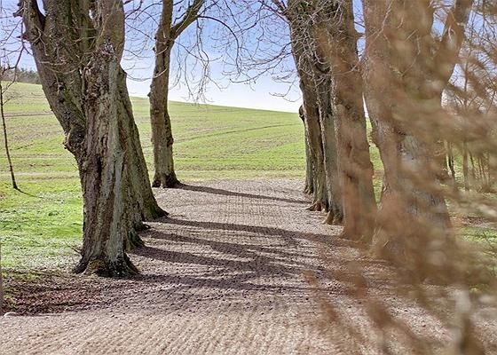 Man ankommer til Rodal via lang privat fællesvej, hvor ejendommen ligger som den eneste beboelse med stor afstand til naboer.