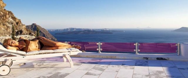 Ein Doppelzimmer mit King-Size- Bett mit elektronischer Unterstützung Mechanismus und ein Badezimmer mit Jacuzzi -Badewanne. Ein geräumiges Wohnzimmer mit Kamin und zwei private Veranda mit Sonnenliegen und einem atemberaubenden Blick auf den Vulkan und die Caldera Gebiet .