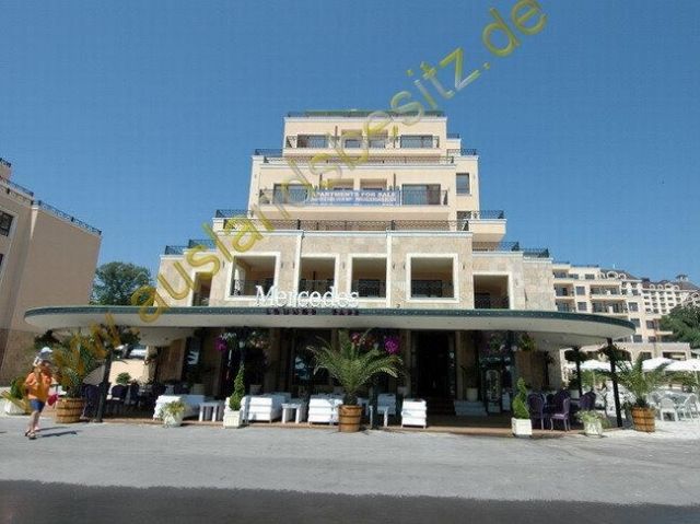 Luxus Appartementanlage erste Meereslinie am Goldstrand. Das Gebäude ist 30 m entfernt vom feinsandigen Badestrand, 3 km von Goldstrand, 5 km von Sveti Konstantin, 12 km von Varna, 20 km weit vom internationalen Flughafen. Das Städtchen Goldstrand ist berühmt für seine schönen Strandpromenaden, welche zum Verweilen und Entspannen einladen. Goldstrand liegt am nördlichen Teil der Schwarzmeerküste und hat veiel Möglichkeiten zum Einkaufen und Amüsieren zu bieten.