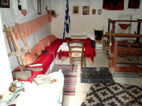 Durch eine Holztür gelangt man in einen sonnigen Innenhof. Im Erdgeschoss gibt es 2 grosse Zimmer, einen offenen Kamin, einen externen Holzofen und einen Abstellraum. Draussen führen Stufen hinauf in den 1. Stock, in dem sich die Küche, das Wohnzimmer und 3 Schlafzimmer, eines davon mit sonniger Terrasse, befinden.Ein kleiner Abstellraum konnte hier zu einem Bad mit Waschküche umgebaut werden. Das Haus wird mit seinem Inhalt, den kretischen Antiquitaten und Artefakten verkauft. Das Gebaude braucht einige Modernisierungen, ist aber auch in seinem gegenwartigen Zustand bewohnbar. Der Badeort Agia Galini liegt 5 km und die Stadt Rethymnon 47 km entfernt.