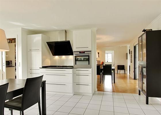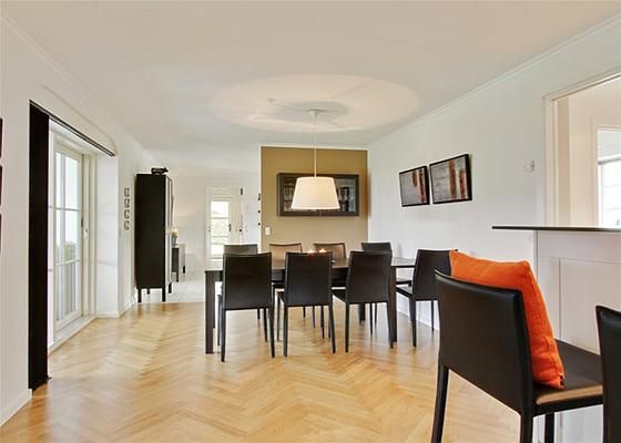 Stilen og materialevalget er gennemført og konsekvent med ens klinker, ens inventar i køkken og badeværelser, flotte egetræsgulve lagt som sildebensparket, granitbordplader, lyse og indbydende rum, opdeling i forældre- og børneafdeling, energi- og allergivenligt, kort sagt - et sted hvor der bare er tænkt over tingene.