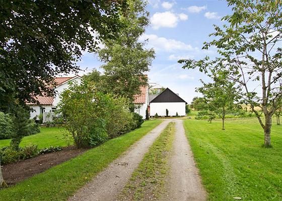 Til ejendommen er der et hvidmalet stuehus med røde glaseret tegl. S...