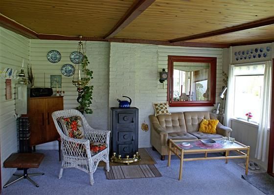 Sommerhuset har en dejlig stor og lys stue med brændeovn, hvorfra der er udgang til sydvendt terrasse. Pænt soveværelse med skabe. Lille værelse med sengeplads. Dejligt køkken med skabe i lys eg. Flot toilet med skabsmiljø. Havestue med brændovn og kig til fjorden. Derudover er der et bruserum, hvor der også er plads til vaskemaskinen. Stort bryggers/værksted, hvorfra der er udgang til stor carport. Bag sommerhuset er der også en overdækket terrasse.