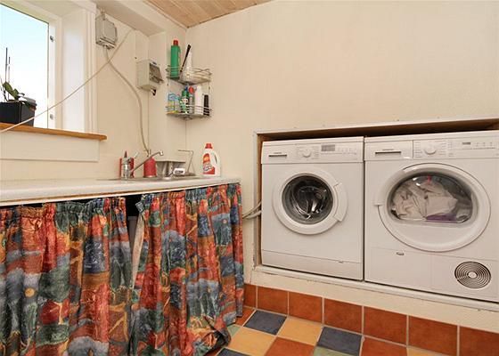 Indeh.: Entre med klinkegulv og trappe til 1. sal, Bryggers med klinkegulv, bordarrangement med vask og vaskefaciliteter, Badeværelse med bruseniche, Pænt køkken/alrum med klinkegulv samt udgang til overdækket terrasse, Viktualierum, Lille stue med franskdør til stue med trægulv og brændeovn.