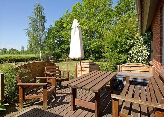 Boligen tager sig godt ud og rummer hele 216 kvm fordelt på 2 plan. Desuden dejlig udestue samt træterrasse, hvorfra du kan nyde haven og den skønne udsigt ud over markerne.