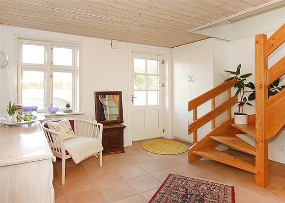 Huset har en spændende og god indretning. Stor rummelig entre/hall med klinkegulv og trappe til 1.sal. Dejligt soveværelse med skabe og lyst askeparket på gulvet . Stor dejlig stue med dobbeltsidet lysindfald og udgang til havestuen/haven via franske døre. Stuen har flotte lyse askeparketgulve fra Trip Trap flot hvidt filtloft med stuk og spots langs væggene. Via franske døre er der også adgang til super flot gennemgående køkken/allrum med ægte landkøkkenstemning. Der er flot muret, åben pejs som samlingspunkt, indmurede