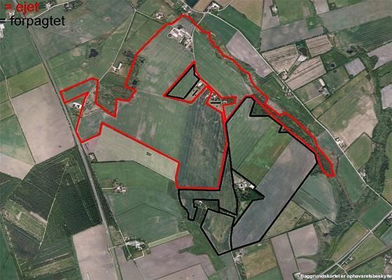 Det tilhørende areal udgør 88,4 ha, hvor ca. 73 ha er støtteberettiget agerjord JB 1-3, ca. 1,7 ha permanent græs og ca. 10 ha skov. Jorden ligger samlet og kan vandes fra eget markvandingsanlæg.
