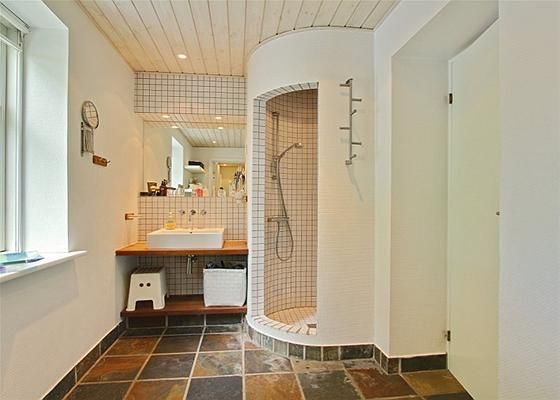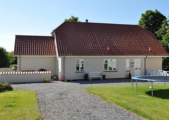 Boligen er opført i sten med malet facade, tegltag og bondehus vinduer. Er indrettet som følger: Forgang med trappe til 1.sal, køkkenalrum med HTH elementer, tv stue, stue, værelse, badeværelse med bruseniche og baggang/bryggers. 1.sal består af soveværelse med tilhørende walk in closet, 2-3 værelser og pulterrum.