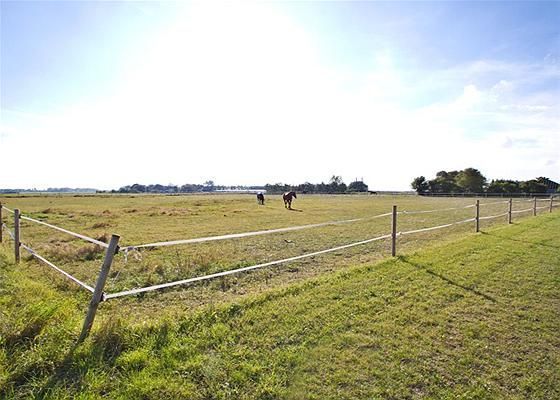 Stort ridehus på 22 x 44 m med god bund, ridebane 20 x 60 m med dressurhegn, store indhegnede folde samt gode P-muligheder.