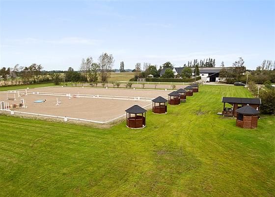 Ridecentret har alle ønskelige faciliteter Her kan næves Ridehus med ridebane på 20 x 40 meter med helt ny ridebund, med tilknyttet cafeteriaafsnit med køkken, og flot udsigt over ridebanen, 3 udendørs dressurbaner 20 x 60 meter samt springbane på 70 x 90 m. Til ridebanerne er tilknyttet sekretariat, speakerhus samt dommerhuse. Herudover hestestald med 23 bokse samt foderlade og rytterstue.