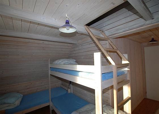 Det oprindelige hus er indrettet med lille gang med ny dør til terrassen og adgang til mindre badeværelse med brus, trappe til 1. sal - der indeholder 2 gode værelser, det ene med udgang til svalegang. Desuden køkken/alrum i åben forbindelse med mindre opholds-/hygge-afdeling, her er den ene af husets 2 brændeovne placeret centralt i det åbne rum.