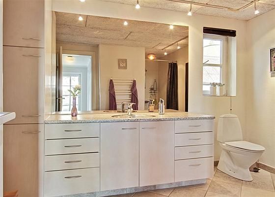I kælderen findes nyere fliser i vaskerum og badeværelse - med gulvvarme. Dertil 2 disponible rum med trægulv. Disse har beboelsesstandard.