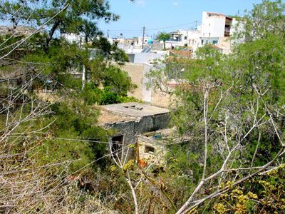 Altes Steinhaus, renovierungsbeduerftig, im Zentrum des Dorfes Kamilari, Suedkreta.