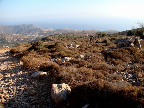 Das Land befindet sich 5km entfernt vom wunderschonen Strand von Triopetra im Süden Kretas. Der obere Teil bietet Panoramablick auf die Südküste und die umliegende landliche Umgebung. Die Zufahrt über eine Kiesstrasse liegt 1 km entfernt von der Hauptstrasse. Diese ruhige Gegend eignet sich ideal, der die unberührte Natur von Kreta geniessen will und atemberaubende Aussichten sucht.