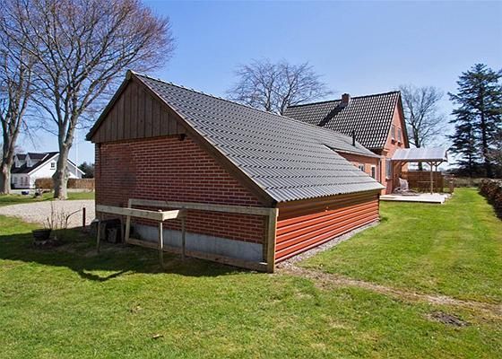 Ejendommen har gode udbygninger, i form af regulær og meget anvendelig dobbelt garage, indrettet med værksted, et rigtigt godt udhus med fast bund, samt dejlig overdækket terr...