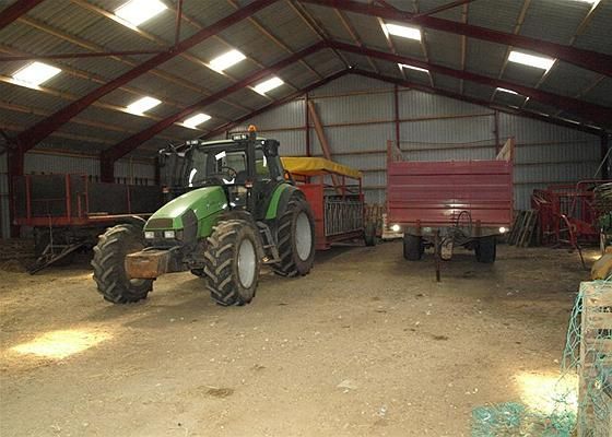 Bagved ejendommen ligger en 257 m² stor hal, der anvendes til kvæg i løsdrift samt en 364 m² maskinhal fra 2006.