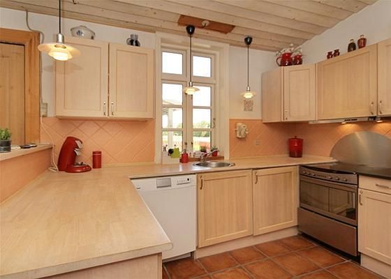 Indeh.: Entre med klinkegulv og trappe til 1. sal, Bryggers med klinkegulv, bordarrangement med vask og vaskefaciliteter, Badeværelse med bruseniche, Pænt køkken/alrum med klinkegulv samt udgang til overdækket terrasse, Viktualierum, Lille stue med franskdør til stue med trægulv og brændeovn.