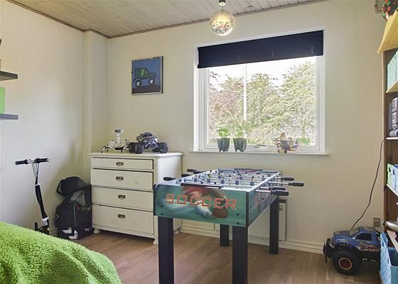 Rødstens vinkelvilla med brune tagsten, beliggende i godt villakvarter i lukkel lomme med have ud til åbne marker. Kort afstand til skole, børnehave og dagligvarebutik. Villaen er opført i 1986 løbende vedligeholdt og moderniseret med bla. nyt køkken. Fremstår overalt pæn og velholdt. Indeholder entre, badeværelse med bruseniche, køkken/alrum med brændeovn, opholdstue med brændeovn og udgang til haven og dejlig lukket og ugenert gårdgave, 2 børneværelser, soveværelse med adgang til badeværelse, bryggers baggang. Muret garage på 26 kvm