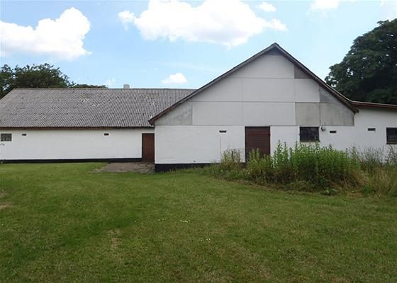 Udbygningerne er hvidkalket med eternittag med gode muligheder for mindre dyrehold. Godt værksted og fyrrum med kombineret olie/træfyr. Grundareal i alt 500 kvm.