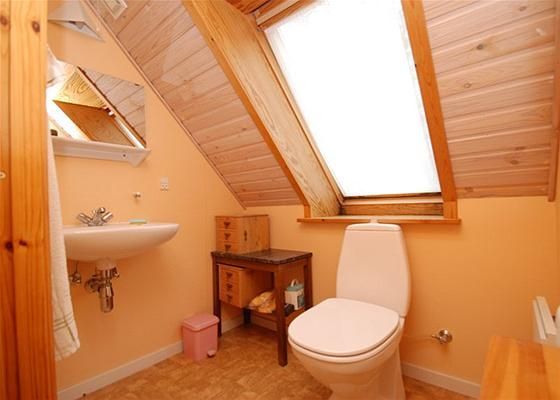 Indretning i bolig: I stueplan indrettet med lille baggang/entre. Mindre gæstetoilet, der står uistandsat, med oliefyr og sekundær loftsadgang via loftslem. Hyggelig stue med rustikt præg gennem lofter med træbeklædning og synlige bjælker. Åben adgang til dejligt køkken i lyse elementer og med spisekrog. Fra stuen er der endvidere dobbelt glasdør til spisestuen, hvortil der også er dør fra entreen. Entreen er med klinkegulv med gulvvarme, adgang til badeværelse med muret bruseniche, dør til stort vinkel-soveværelse med terrassedør og desuden gedigen fyrretræstrappe til 1.sal.