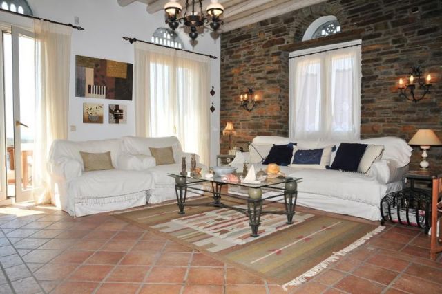 Eine wunderschöne Stein Villa auf der Kykladischen Insel Andros vor dem Strand mit 370 qm Wohnfläche auf 3 Etagen und 4000 qm Grundstücks Fläche . Erdgeschoss : 1 Schlafzimmer ,Küche ,Wohnzimmer Kamin ,Bad. 1stock: 3 Schlafzimmer die 2 Schlafzimmer haben Kamin, 2 Badezimmer. Auf dem Garten ist der Schwimmbecken 12* 5,5 und eine Pergola mit Sitzecke der ganze Garten hat automatische Bewässrung Anlage. Es gibt eine Treppe die zum Strand herunter geht. Andros hat ein Hubschrauberlandeplatz. Athen ist von Andros 2 stunde entfernt mit dem Schiff und Mykonos 2,5 Stunden entfernt. Der Preis der Steinvilla ist von 2.500.000 euro auf 1.200.000 Euro
