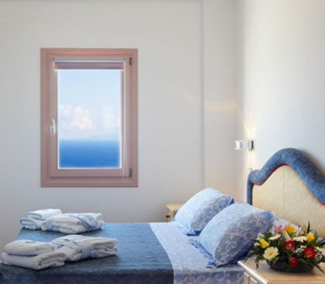 Ein Doppelzimmer mit King-Size- Bett mit elektronischer Unterstützung Mechanismus und ein Badezimmer mit Jacuzzi -Badewanne. Ein geräumiges Wohnzimmer mit Kamin und zwei private Veranda mit Sonnenliegen und einem atemberaubenden Blick auf den Vulkan und die Caldera Gebiet .