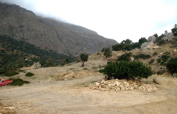 Das mit Oliven bepflanzte Land befindet sich oberhalb des Triopetra-Strandes auf einer ebenen Position. Zufahrt