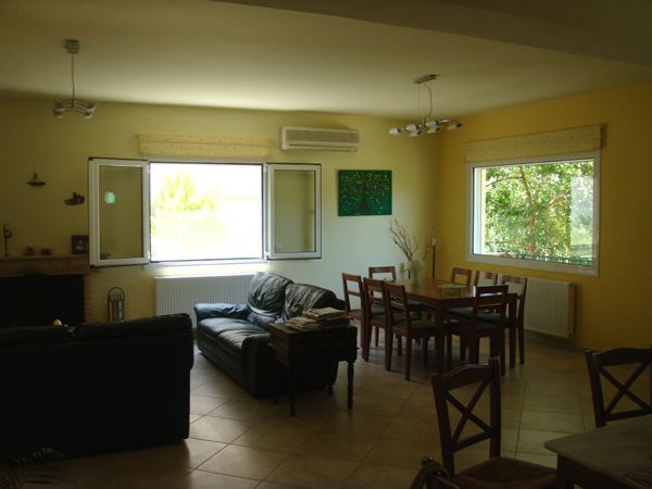 Das Haus befindet sich am Stadtrand von Timbaki, 2 km vom Strand von Kokkinos Pirgos entfernt. Das 5 Jahre alte Haus ist offen gestaltet, mit einer Küche, einem Esszimmer und einem grosses Wohnzimmer mit offenem Kamin. Es gibt 3 geraumige Schlafzimmer, das Hauptschlafzimmer hat einen begehbaren Kleiderschrank und ein eigenes Bad mit Dusche. Die beiden anderen Schlafzimmer teilen sich einen grossen, begehbaren Kleiderschrank, der als Verbindung der beiden Zimmer dient. Es gibt ein weiteres Bad mit grosser Badewanne und ein Büro neben der Küche. Auf der Rückseite des Hauses befindet sich eine grosse Terrasse mit Platz für einen Esstisch, sowie einem separaten Sitzbereich und einen Grillplatz mit Holzofen / Grill. Der gepflegten Garten mit Rasenflache ist mit einer Fülle von Blumen und Baumen bepflanzt. Es gibt einen doppelten Lagerraum im hinteren Teil des Gartens, vorne ist eine Parkplatz mit einem Carport. Das Haus hat eine Baugenehmigung für 2 weitere Etagen und es kann unmobliert oder mobliert gekauft werden.