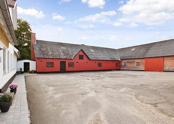 Til ejendommen er der et hvidmalet stuehus med røde glaseret tegl. S...
