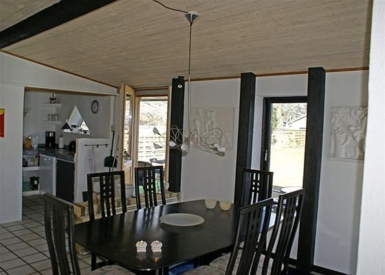 Sommerhuset er med sine 139 kvm velegnet til at huse en stor familie, og de store fællesrum centralt i huset har alle en flot udsigt til fjorden.