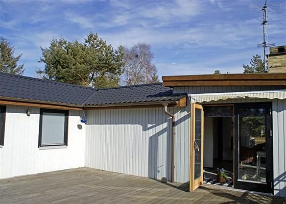 Til sommerhuset er der også ved sommerhusets hoveddør en udestue i glas/aluminium og der er også et redskabsrum. i forbindelse med sommerhuset.