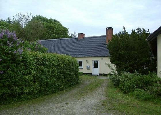 Huset er pudset og maler med eternittag.