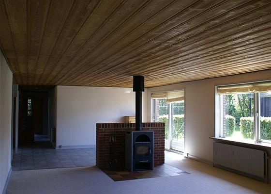 Beboelsen er en stor dejlig rødstens villa i 1½ plan med eternittag. I stueplan er villaen indrettet med entre med trappe til 1.sal. kontor. Stor opholdsstue med brændeovn, i åben forbindelse med spisestue og pænt køkken med lyse elementer. Baggang/bryggers med skabe og plads til vaskemaskine og tørretumbler. Gang med adgang til badeværelse med bruseniche og badekar. Stort soveværelse med skabe og 2 store værelser, det ene med skab.