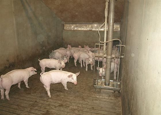 Produktionen foregår i fuldspaltet V-stald fra 1998 samt stalde som er ombygget i 2005/2006, hvor 2/3 er spalter og resten fast gulv. Tørfodring. Træk & Slip.