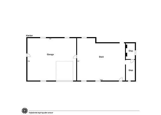 Er indrettet med dobbelt garage, lade, værksted og isoleret gildesal/anneks med the køkken og toilet.