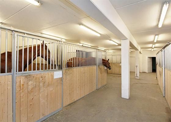 I den sidste del er der opført hestestald, personalerum, div. opbevaringsrum, toilet.