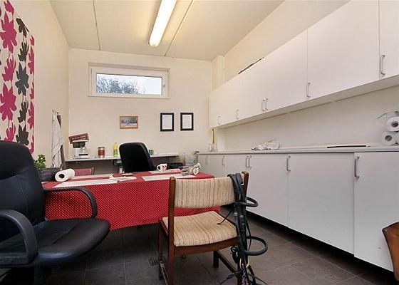 Den første del er indrettet med administration, kliniklokaler, personalerum med omklædning og bad, kundetoilet mv.