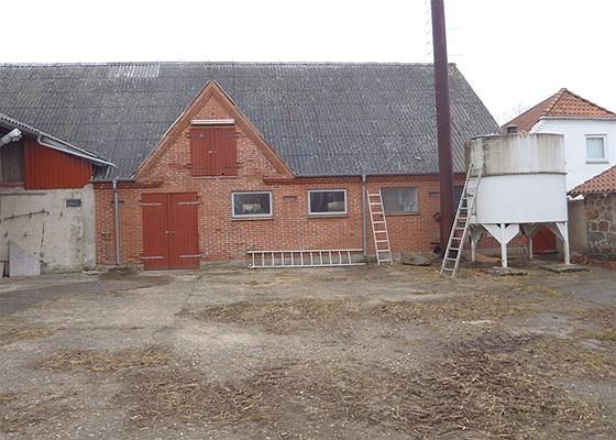 Staldbygning, maskinhal, halvtag og kampestensbygning, i alt 1182 kvm.