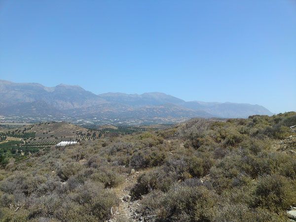 Nur 5 Minuten vom Strand von Kalamaki auf einer Anhohe mit Panoramablick auf das Libysche Meer und die Psiloritis-Berge. Wasser- und Stromanschluss in der Nahe des Grundstücks.