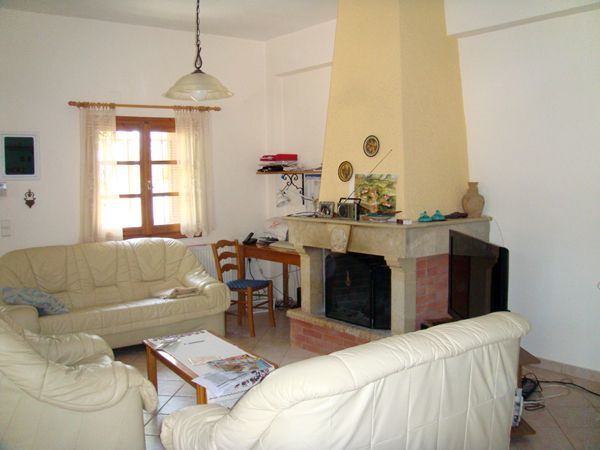 Das 2-geschossige Haus liegt am Ortseingang von Vrelli, einem kleinen Dorf ca. 5 Autominuten von Mires entfernt. Das Haus wurde 1998 in hochwertigem Standard gebaut. Das Erdgeschoss hat einen offenen Wohnbereich mit voll ausgestatteter Küche, Essbereich und Lounge mit Kamin. Ein Doppelschlafzimmer und ein Bad mit Badewanne. Eine aussenliegende Treppe führt ins 1. Stockwerk , wo eine separate Wohneinheit mit 2 Schlafzimmern incl. Balkon liegt. Das Bad ist mit Duschstall ausgestattet und es gibt einen offenen Wohn/Sitzbereich mit Küche. Alle Raume werden über eine zentrale Olheizung beheizt und verfügen über Ventilatoren und Klimaanlage. Wasser wird über Solar sowie eines Thermostats geheizt. Ein grosser Garten mit Grill-BBQ-Bereich mit Holzofen umgibt das Haus. Auf der hinteren Seite des Gartens befindet sich ein Lagerraum und an der Frontseite eine Doppelgarage mit Fernsteuerung. Die Lage ist ideal in der Nahe des Ortes Mires und gleichzeitig mitten in der Natur. Die ortlichen Strande liegen nur 15 Autominuten entfernt, die City von Heraklion nur 30 Autominuten (wenn die neue Schnellstrasse fertiggestellt ist)
