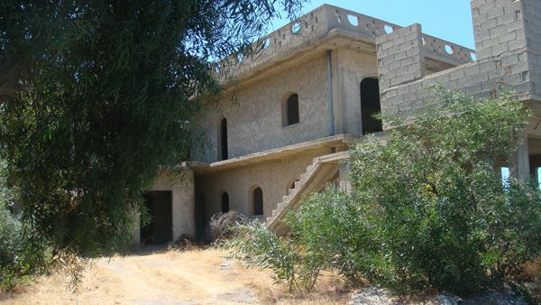 Kalamaki Strand, Süden Kretas. Halbfertiges 2-geschossiges Hotelgebaude, nur wenige Meter vom Meer e.......